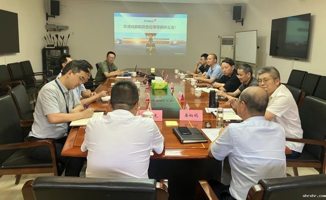 7 月11日,成都航空职业技术学院(简称:成都航院)副院长何龙一行10人赴北京飞机维修工程有限公司(简称:Ameco)成都分公司开展校企产学研合作研讨会,就双方共建飞机结构适航与维修工程研究中心项目进一步深入交流。Ameco成都分公司总经理岳栖鹤、生产副总经理陈小波、创新发展部高级专家兼部长助理谭航、各部门项目负责人、创新发展部相关人员、成都航院相关人员参与研讨会。会议由Ameco成都分公司生产副总经理陈小波主持。