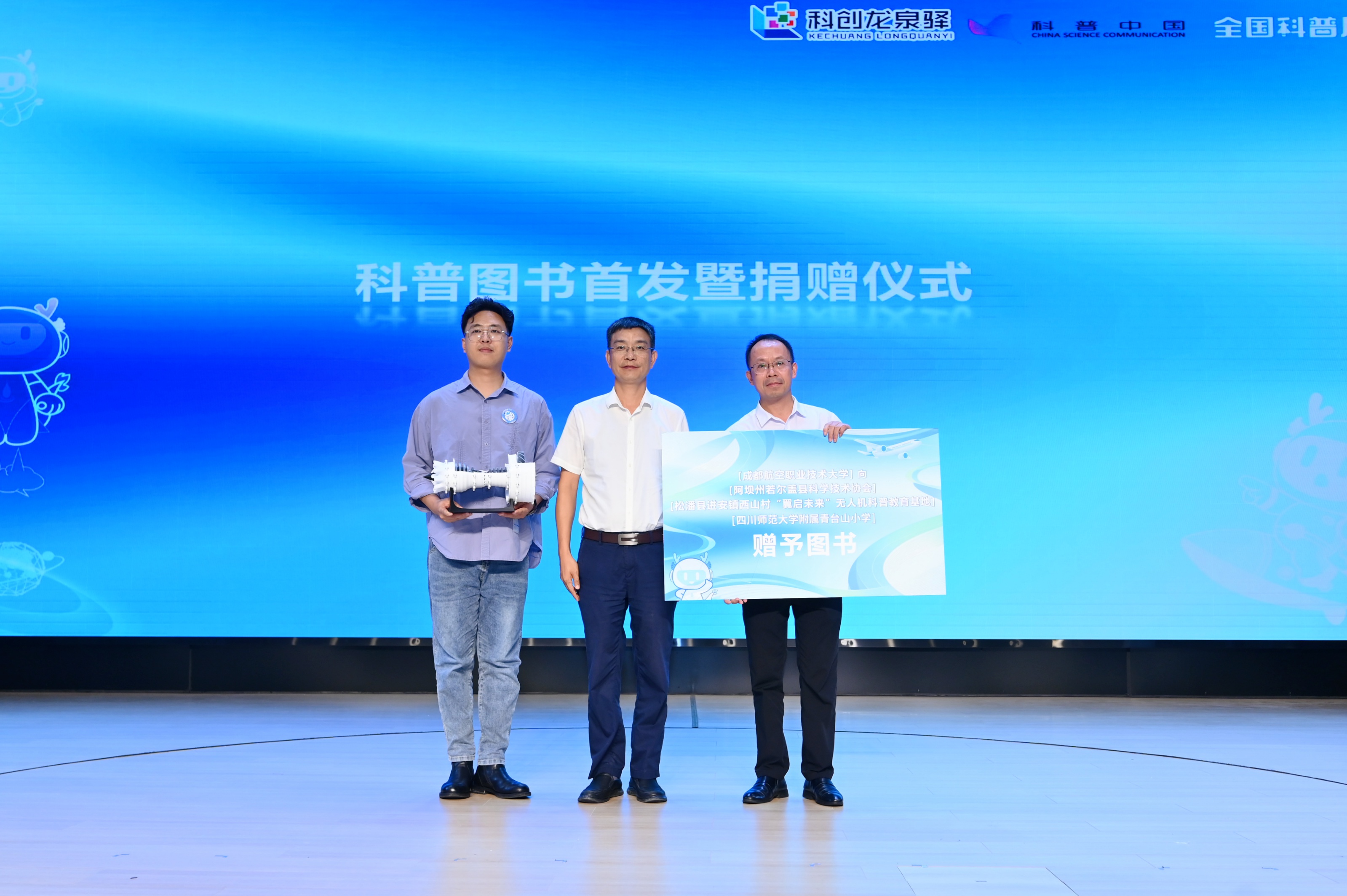 活动现场,举行了由学校联合行业专家共同编著的《未来科技-3D打印的奇妙旅程》科普图书首发暨捐赠仪式,该书获中国工程院院士卢秉恒作序推荐。会上原成都航空职业技术学院副院长李静森代表学校向阿坝州若尔盖县科学技术协会、松潘县进安镇西山村“翼启未来”无人机科普教育基地及四川师范大学附属青台山小学捐赠新书,推动优质科普资源普惠共享。