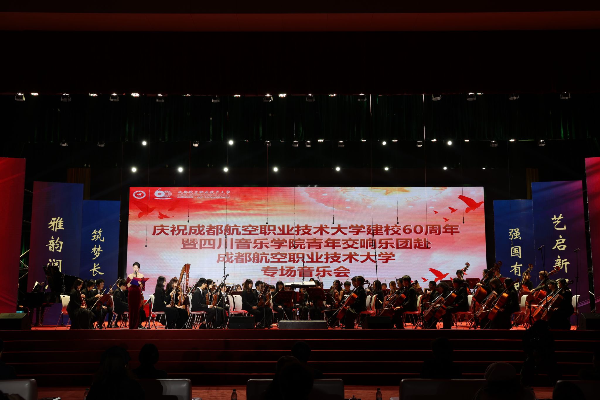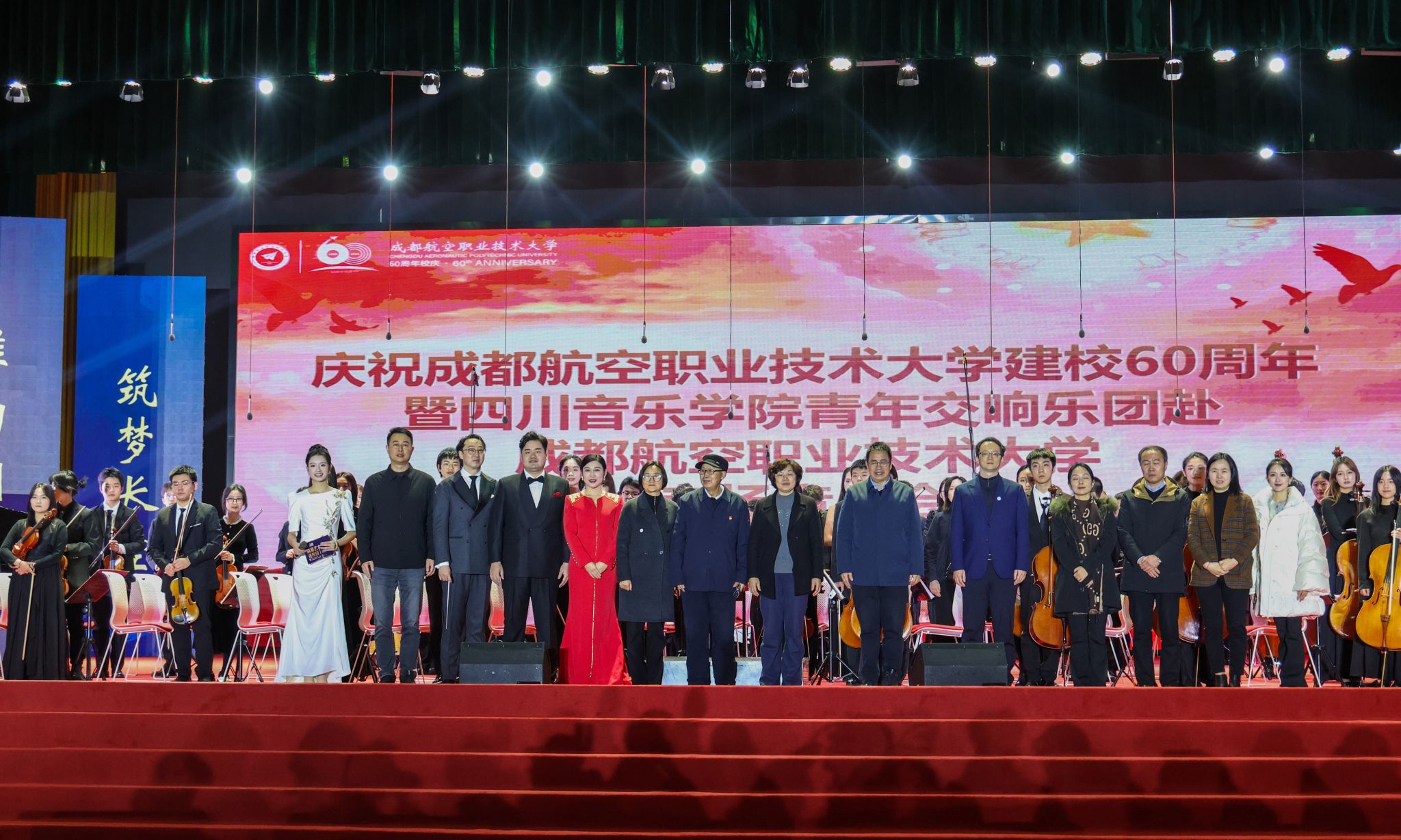 龙泉驿校区文体馆内流光溢彩、座无虚席,“庆祝建校60周年暨四川省高雅艺术进校园专场音乐会”在此举行。学校党委书记陈小红,党委副书记、纪委书记徐林出席活动。各界校友代表、校企合作单位代表、兄弟院校嘉宾与校内师生共计2000余人欢聚一堂;线上直播更吸引了超过8000人次云端观礼。本次音乐会由学校教师赵茜与四川音乐学院艺术导聆罗雨嫣联袂主持。