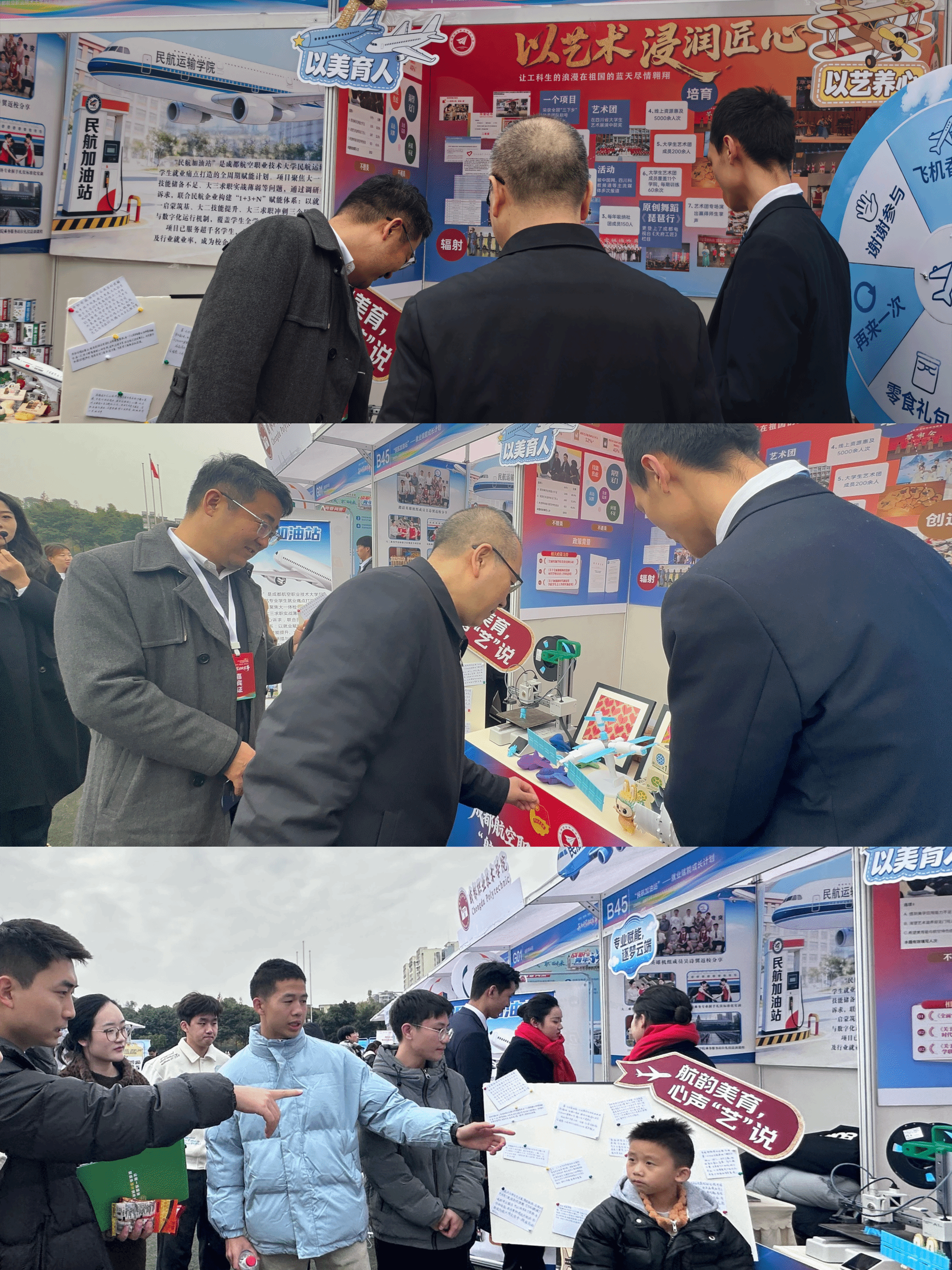 荣誉由校、院两级团队共同铸就,呈现出多点开花的生动局面。一是校级项目“顶峰突围”。由优秀教师团队蒋晓敏、赵茜、黄芮、刘忻宜指导,校学生会推报的“航美浸润、艺育匠心”艺站式学生美育服务项目,精准聚焦理工科院校美育浸润痛点,通过打造沉浸式艺术体验空间,极大地丰富了同学们的第二课堂。该项目凭借极高的互动性和满意度,经学生观察团和大众评审团高票认可,不仅入选“百佳”,更从100个优秀项目中脱颖而出,强势斩获“最受同学欢迎项目”(全省仅30个)。二是院级项目“特色鲜明”。由民航运输学院优秀教师团队苏圳杭和杨曾指导,民航运输学院学生会推报的“民航加油站”项目,紧扣民航专业特色,聚焦同学专业技能提升与职业素养养成,以扎实的服务成效同步入选全省“百佳项目”,实现了校院两级在本科赛道的双丰收。