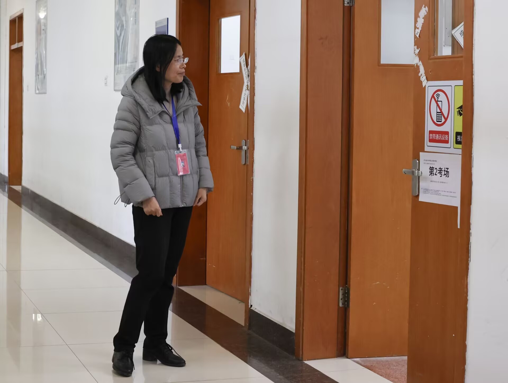 开考当日,校园秩序井然。考点入口设置清晰指引标识,志愿者提供路线引导、身份核验协助、物品寄存等服务。考生凭有效证件有序排队,经全流程安检后进入考场区域。各标准化考场配备5G信号屏蔽仪、视频监控等设备,实现考试全程监控,筑牢考试安全防线,维护考场纪律与公平环境。