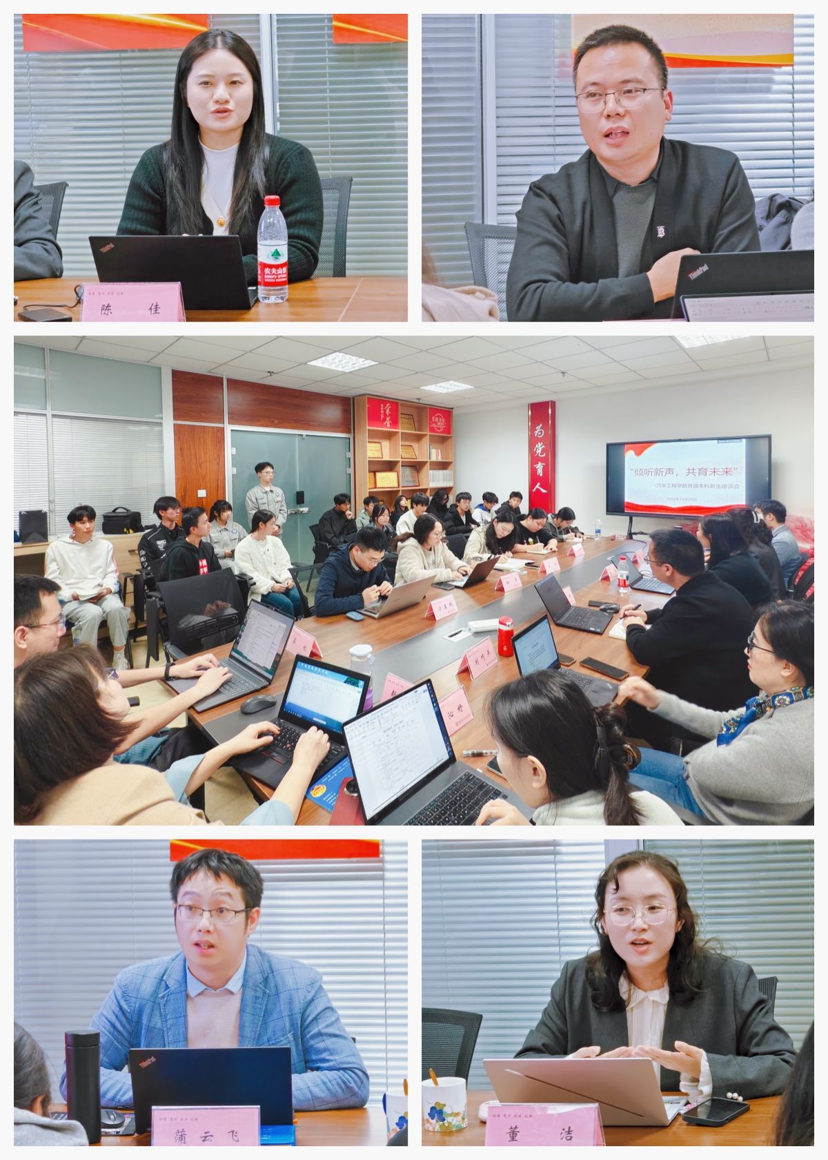 座谈会上,播放了国家奖学金获得者等优秀学生的分享视频,强调深化“家国情怀、严慎细实、自立自强”精神教育,鼓励学生将个人发展融入汽车产业创新浪潮,培养主动探索的成长自觉。为增强新生归属感,胡登洲表示,将通过“飞翔杯”篮球赛等品牌活动搭建交流平台,同时支持各班班委自主组织联谊等活动,营造“团结友爱、积极向上”的班级文化。
