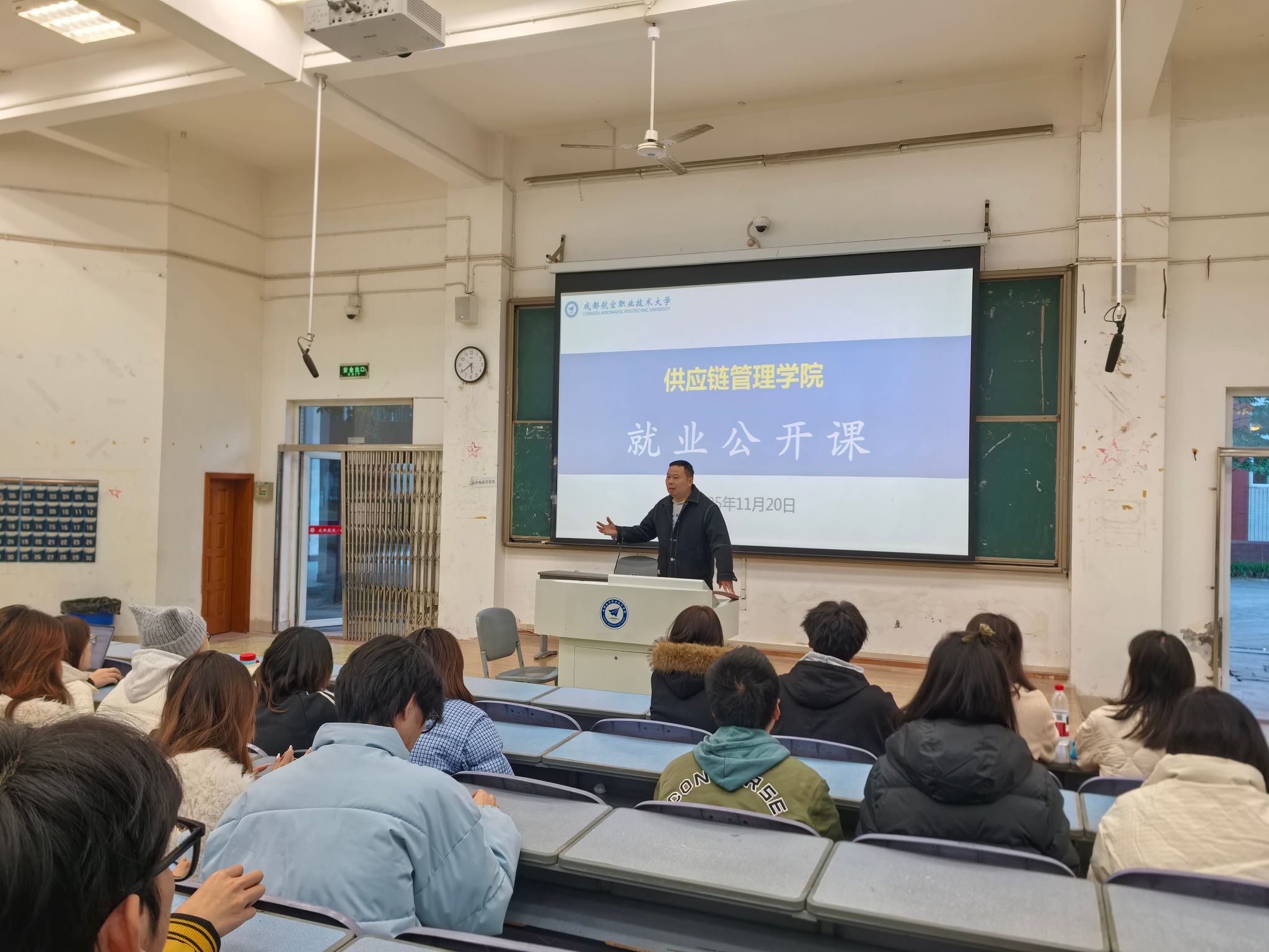 为切实做好2026届毕业生就业服务工作,帮助大三学生提前明晰就业流程、破解学业与就业关键难题1120日, 供应链管理学院在学院学生工作负责人赖启财主持下,成功举办大三学生就业指导公开课。学生会团总支书记李梅老师、学生会指导老师鲜府芸、就业指导老师权丽华及全体大三学生共同参与此次活动,为学生未来就业与学业发展筑牢基础。