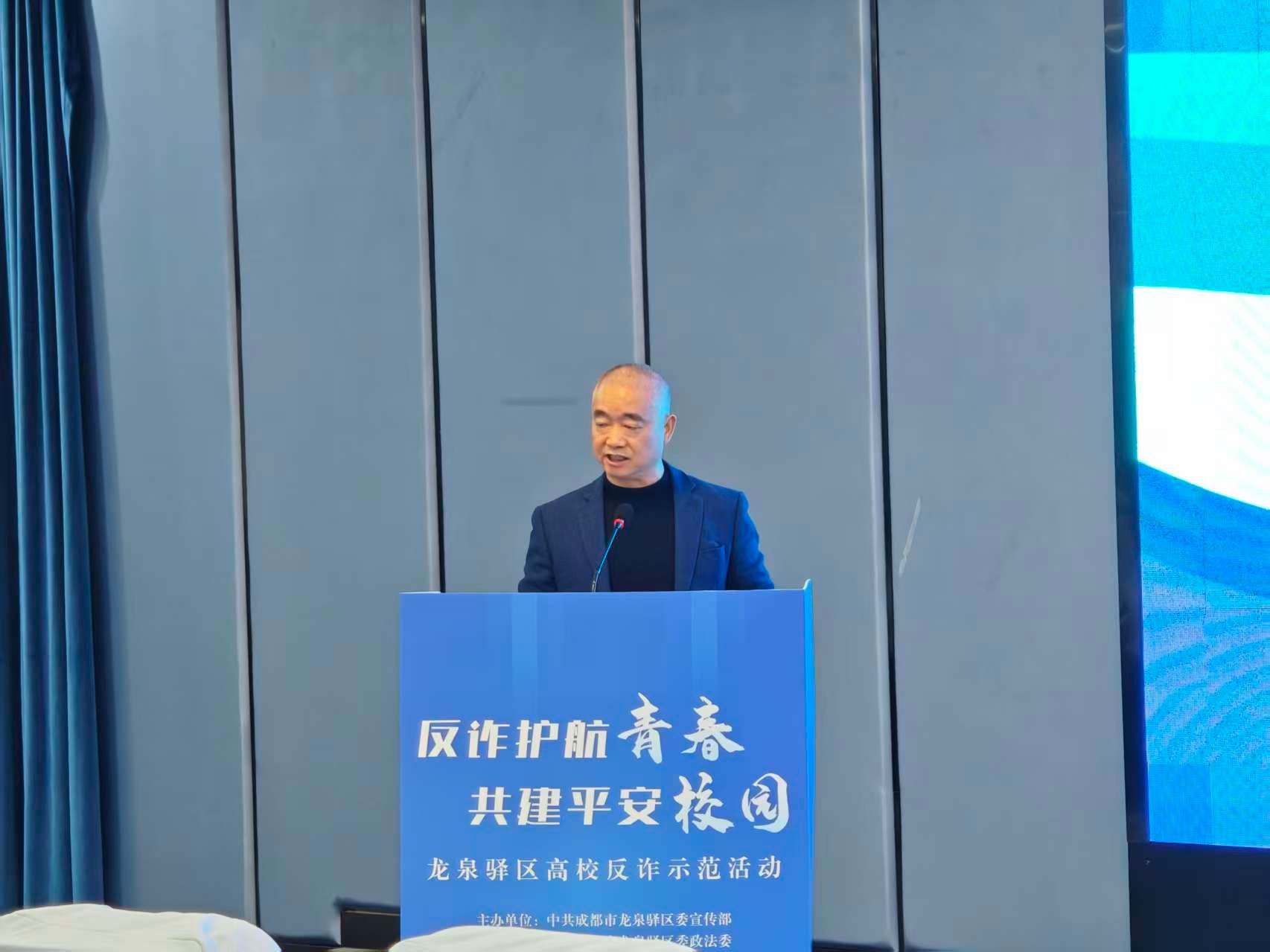 12月18日,由龙泉驿区委宣传部、政法委、教育局、公安分局及团区委联合主办的“反诈护航青春 共建平安校园”高校反诈示范活动在四川长江职业学院举行。活动旨在通过校地联动,创新反诈宣传形式,提升广大师生识骗防骗能力,共同营造平安和谐的校园环境。