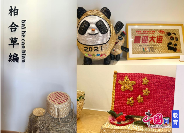 在梨花街社区,服务队成员在工作人员的带领下参观了柏合草编研习中心,通过认真聆听讲解,大家了解了柏合草编的历史渊源与包含红色文化、大运会元素的各种草编成品。柏合草编工艺源远流长,以小麦麦秆为编织主料,其制作流程包括剪草、选草、熏漂、剖草、掐辫、晒草、染草、缝制、磨压等工序,每一步都凝聚了匠人的心血与智慧。