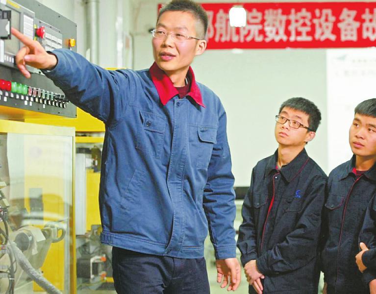 飞机制造技术发展日新月异,职业教育也要不断适应技术发展的需要。2012年,周树强参与国产飞机关键技术的项目研究,需要完成一个复杂零件加工。常规加工有103道工序,他通过优化数控系统参数,提高机床定位精度,将某部位3道工序缩短成1道工序。之后,通过团队共同努力,将总工序减少至69道,大大提高了零件的加工效率。