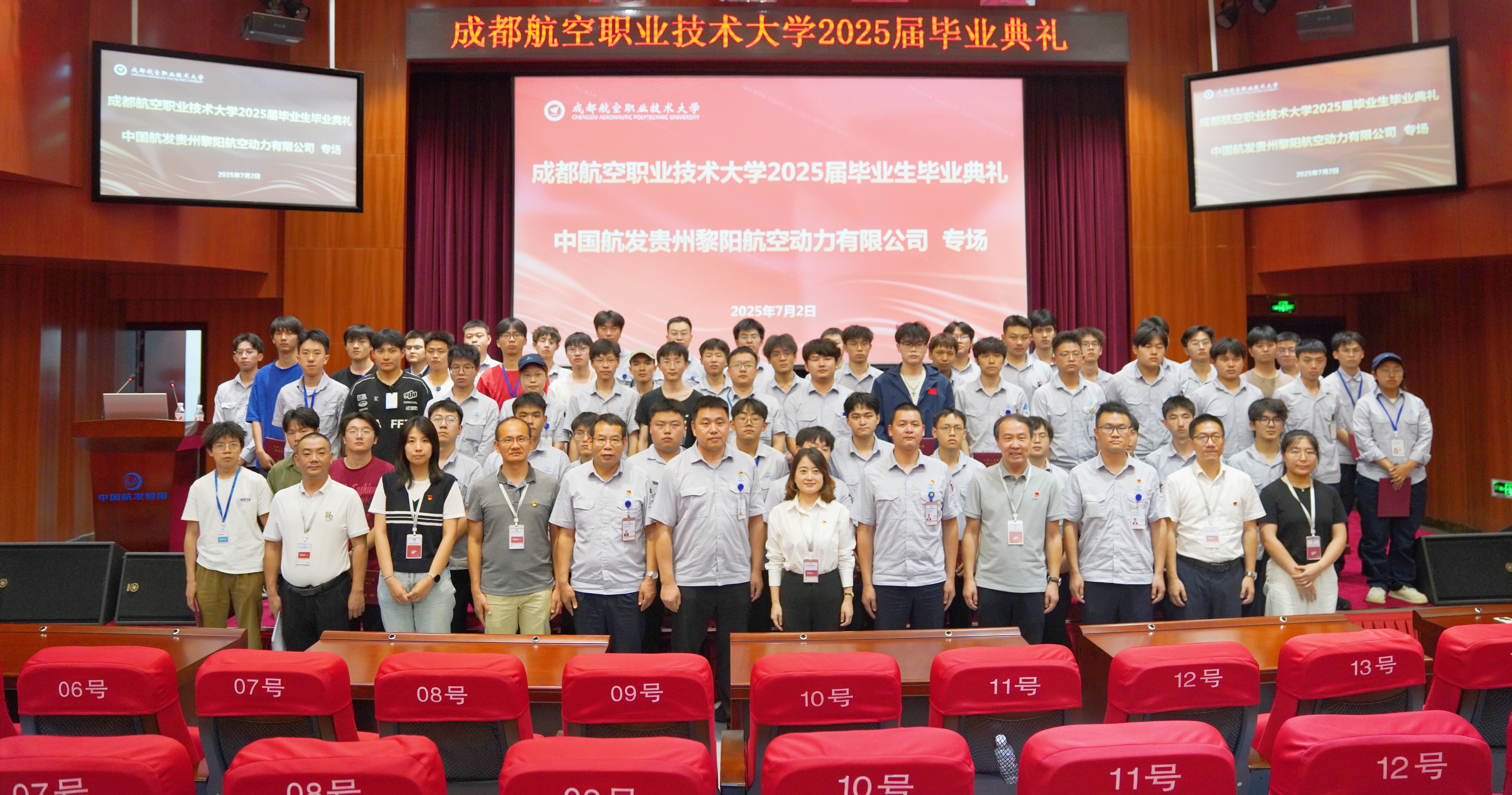 2025届毕业生举行专场毕业典礼。黎阳公司人力资源部部长潘绍锋、副部长袁瑞成和装配厂党委书记肖洪斌、试车厂党总支副书记苏静以及在企毕业生参加典礼。