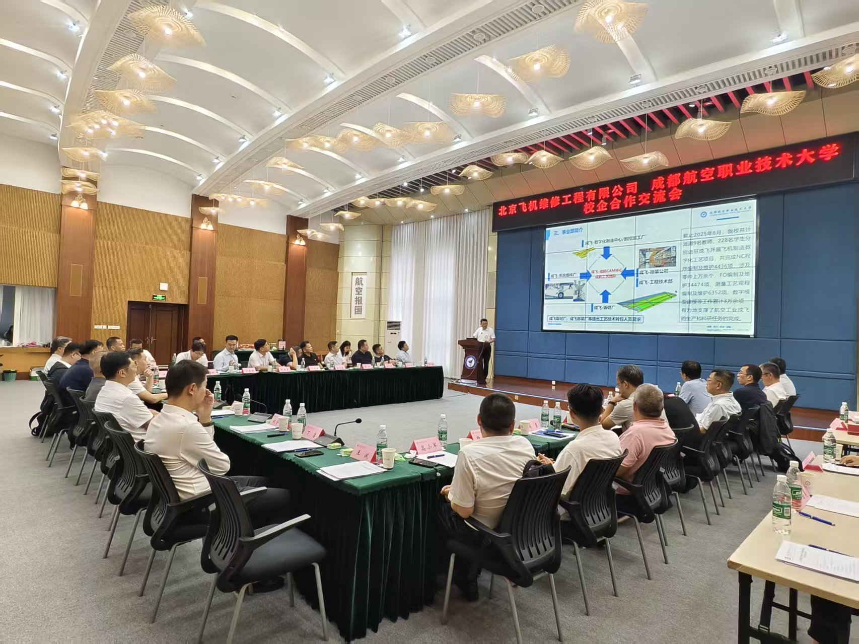 2025年8月29日下午, (简称“ ”)北京飞机维修工程有限公司(简称“Ameco”)共同组织校企合作交流会成功举办。Ameco北京航空发动机维修有限公司、北京科技职业技术大学等多家合作企业、合作院校代表莅临 ,双方围绕深化产教融合、共育高素质机务人才等议题展开深入交流。Ameco首席执行官沈岷、Ameco党委副书记及首席人力资源官王秋奕以及相关部门30余位领导莅临参会。原成都航空职业技术学院院长刘建超,原成都航空职业技术学院党委副书记祝登义共同出席会议。会议以“深化产教融合、共促航空产业发展”为主题,由祝登义主持。