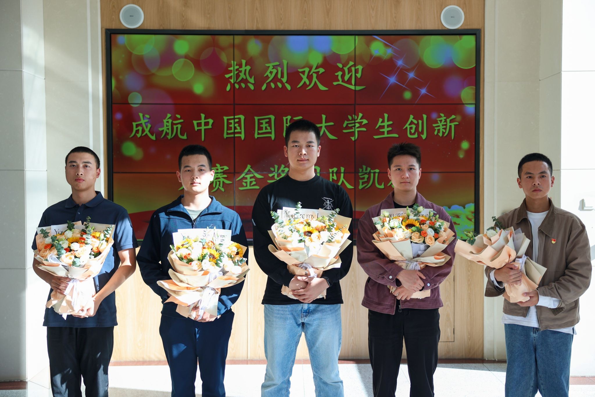 获奖学生(从左至右付祖锡,王鲲鹏,张志强,李泓成,陈杰龙)