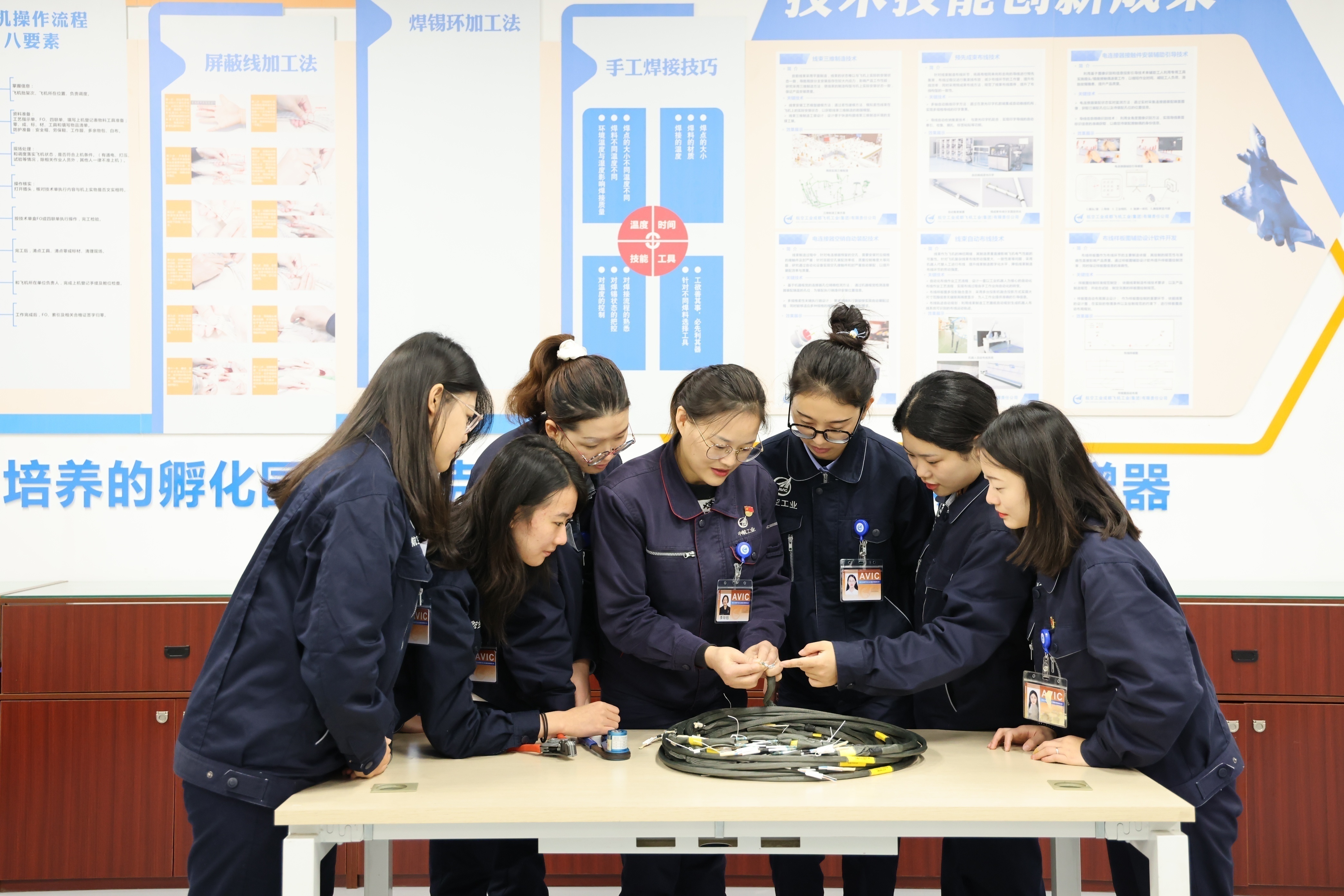 作为中航工业首席技能专家、中航工业成飞飞机电缆首席操作技师,从这里飞向天空的每一架战机身上,都是由李玲钰及其团队所制造、检测和排故完成的飞机电缆来完成“神经信号的传输”。可以说,他们是战机“神经系统”的专科 “医生”,从生产、交付到维修、维护,随叫随到。