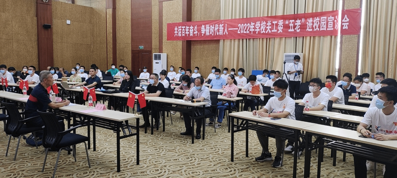 5月10日下午阳光明媚,学校2022年“读懂中国”活动在龙泉校区拉开帷幕。学校“关工委“五老”代表陈炎、符安轼、王德位、武智慧、林训超、姚虹华、唐琼芳等七位老同志,在学校离退休工作处工作人员和各学院学生代表的陪同下,分别深入到航空装备制造产业学院、航空维修工程学院、士官管理学院、无人机产业学院、建筑工程学院、信息工程学院、管理学院等七个二级学院,与学生党员、入党积极分子、学生干部代表进行座谈交流。